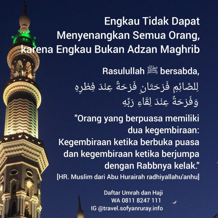 “Barangsiapa berpuasa Ramadhan karena iman dan mengharapkan pahala, akan diampuni dosanya yang telah lalu, dan barangsiapa sholat di malam lailatul qodr karena iman dan mengharapkan pahala, akan diampuni dosanya yang telah lalu.” [HR. Al-Bukhari dan Muslim dari Abu Hurairah radhiyallahu’anhu]