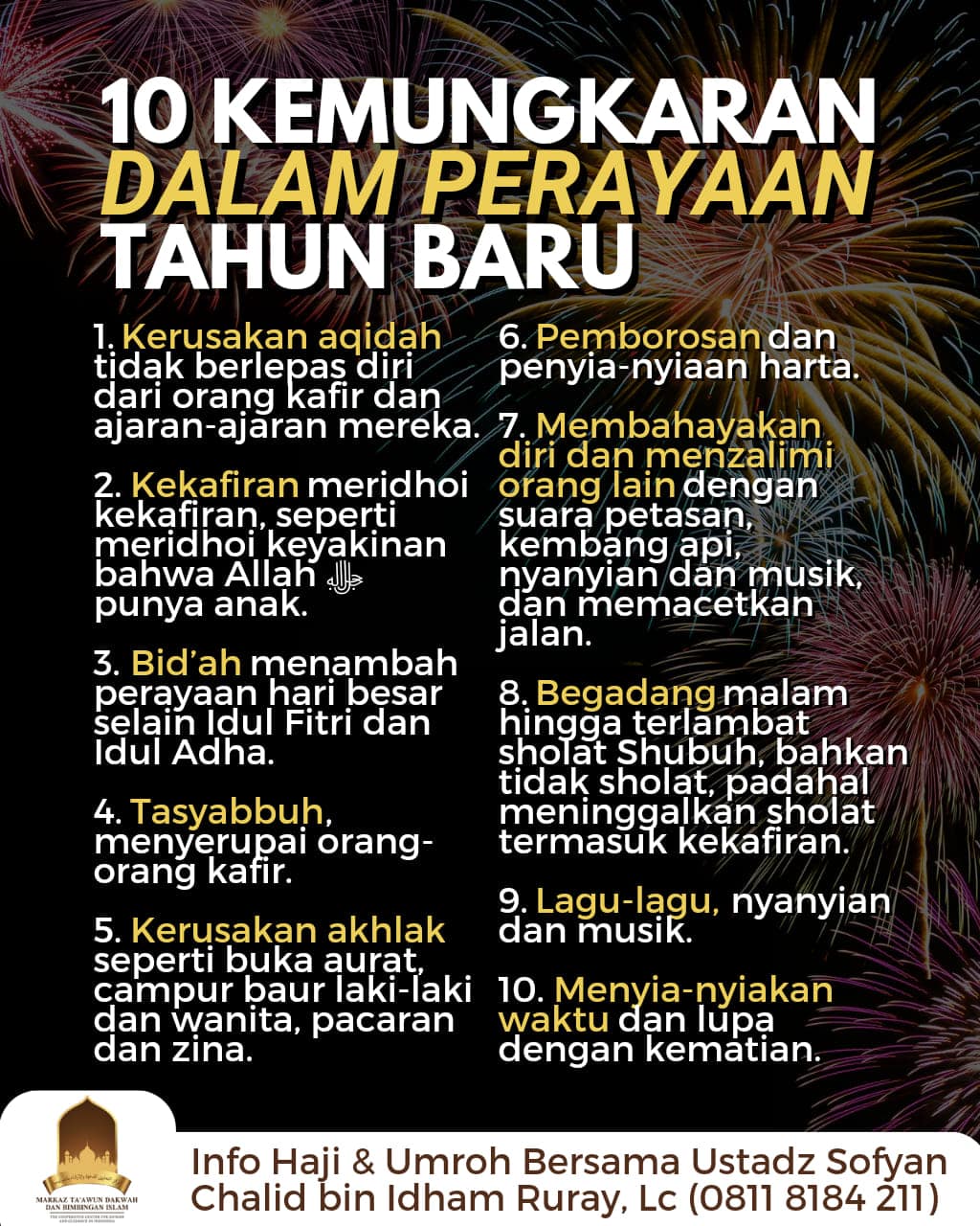 7. Membahayakan diri dan menzalimi orang lain dengan menyalakan petasan, kembang api, suara gaduh nyanyian dan musik, memacetkan jalan dan lain-lain.