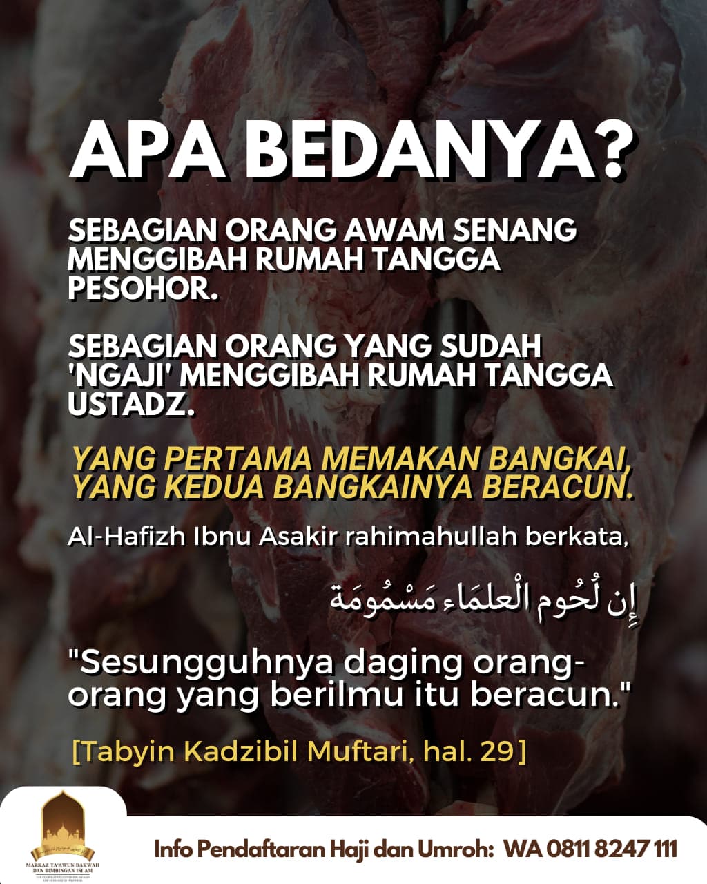 “Sesungguhnya daging orang-orang yang berilmu itu beracun, dan pasti Allah akan menyingkap aib-aib mereka yang merendahkan orang-orang yang berilmu.” [Tabyin Kadzibil Muftari, hal. 29]