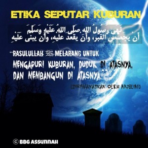 ? “Rasulullah shallallahu’alaihi wa sallam melarang untuk mengapur kuburan, duduk di atasnya dan membangun di atasnya.” [HR. Muslim]