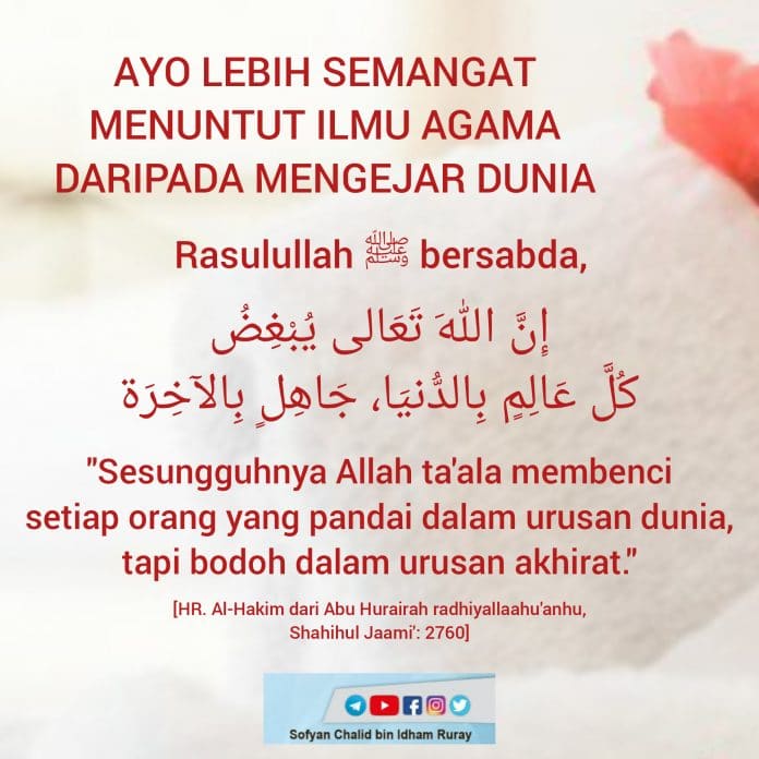 “Sesungguhnya Allah ta’ala membenci setiap orang yang pandai dalam urusan dunia, tapi bodoh dalam urusan akhirat.” [HR. Al-Hakim dari Abu Hurairah radhiyallaahu’anhu, Shahihul Jaami’: 2760]