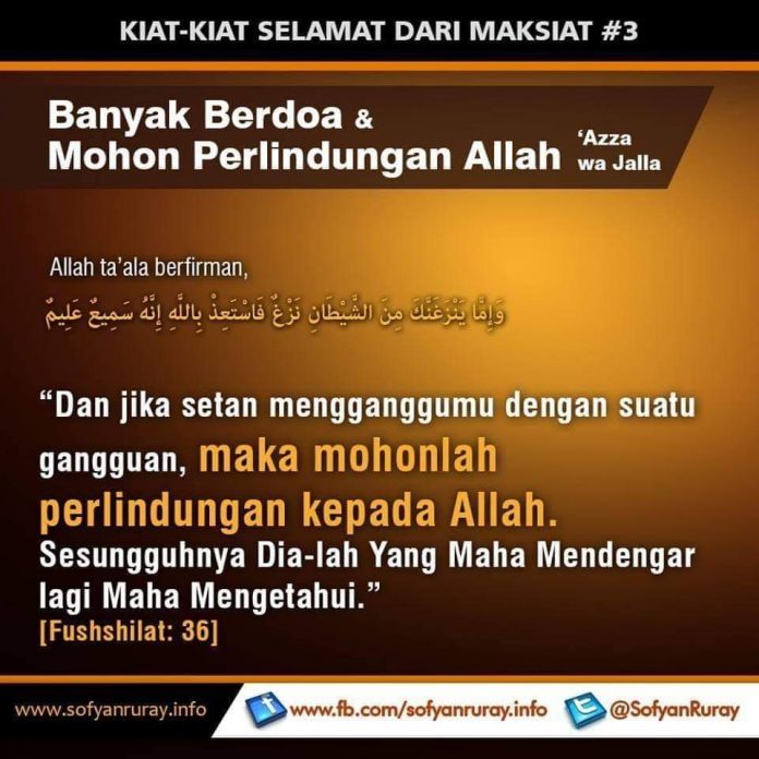 “Dan jika setan mengganggumu dengan suatu gangguan, maka mohonlah perlindungan kepada Allah. Sesungguhnya Dia-lah Yang Maha Mendengar lagi Maha Mengetahui.” [Al-A’rof: 200]