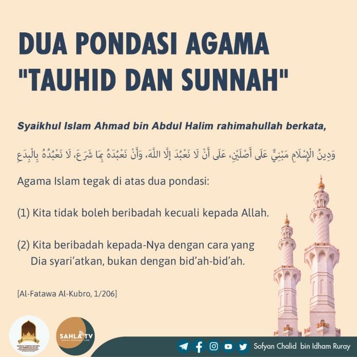 Dua perkara ini adalah dua rukun amalan yang diterima, yaitu harus ikhlas karena Allah ﷻ dan sesuai syari’at Rasulullah ﷺ.” [Tafsir Ibnu Katsir, 5/205]