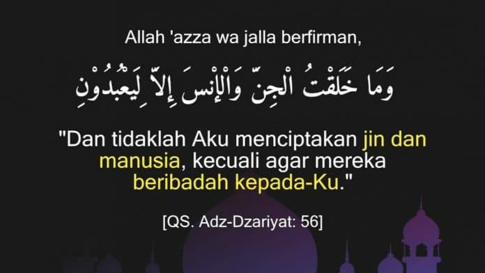“Dan tidaklah Aku menciptakan jin dan manusia, kecuali agar mereka beribadah kepada-Ku.” [Adz-Dzariyat: 56]