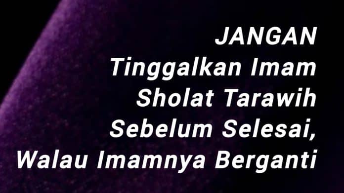 Hendaklah sholat bersama imam sholat tarawih sampai selesai, baik imam sholat 11 raka’at atau lebih, baik tarawih maupun witir, agar mendapat keutamaan sholat semalam penuh.[1]