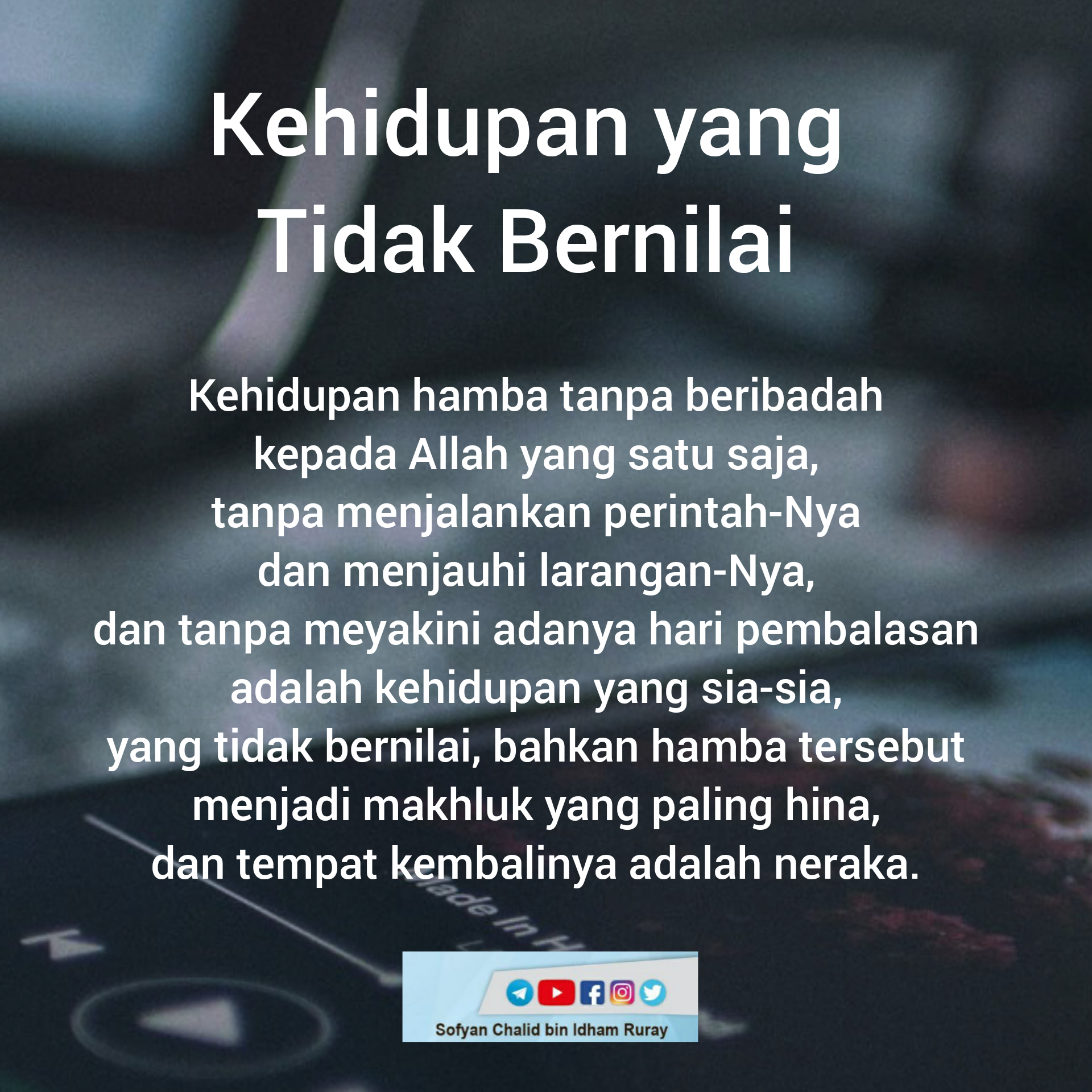 Kehidupan hamba tanpa beribadah kepada Allah yang satu saja, tanpa menjalankan perintah-Nya dan menjauhi larangan-Nya, dan tanpa meyakini adanya hari pembalasan adalah kehidupan yang sia-sia, yang tidak bernilai, bahkan hamba tersebut menjadi makhluk yang paling hina, dan tempat kembalinya adalah neraka.