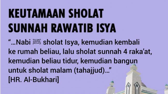 Sholat sunnah ba’diyah Isya dua raka’at termasuk sunnah muakkadah (yang ditekankan) dan dianjurkan untuk selalu dijaga.