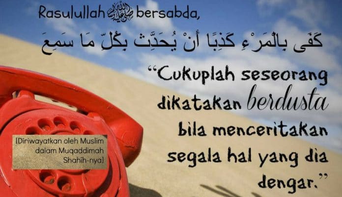 “Cukuplah seseorang dikatakan berdusta bila menceritakan segala hal yang ia dengar.” [HR. Muslim dari Hafsh bin ‘Ashim radhiyallahu’anhu]