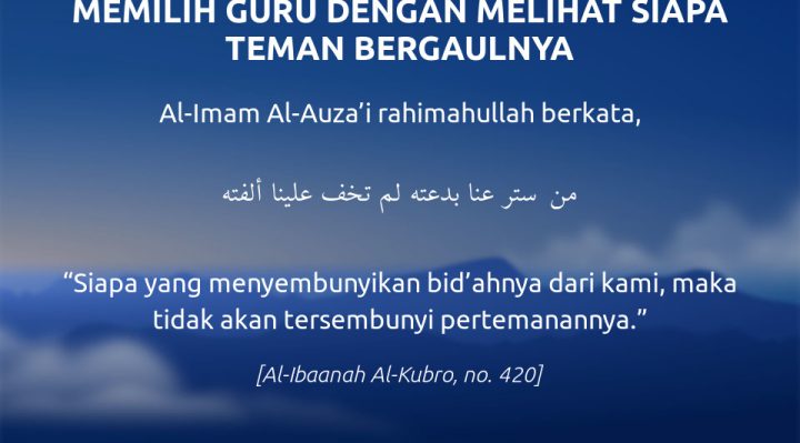 بِسْمِ اللَّهِ الرَّحْمَنِ الرَّحِيمِ ? MEMILIH GURU DENGAN MELIHAT SIAPA TEMAN BERGAULNYA Teman bergaul sedikit banyak akan memberikan pengaruh ke dalam diri seseorang. Bahkan salah bergaul termasuk penyesalan terbesar di hari kiamat. ➡ Allah ‘azza wa jalla berfirman, وَيَوْمَ يَعَضُّ الظَّالِمُ عَلَىٰ يَدَيْهِ يَقُولُ يَا لَيْتَنِي اتَّخَذْتُ مَعَ الرَّسُولِ سَبِيلًا، يَا وَيْلَتَى لَيْتَنِي لَمْ أَتَّخِذْ فُلَانًا … Continue reading MEMILIH GURU DENGAN MELIHAT SIAPA TEMAN BERGAULNYA