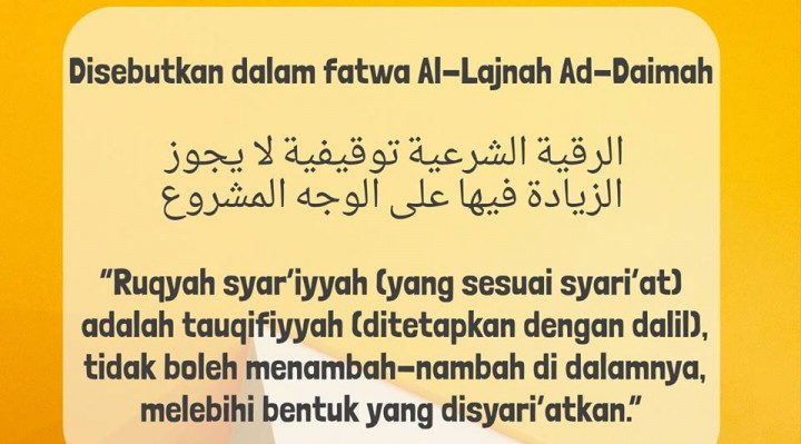 بِسْمِ اللَّهِ الرَّحْمَنِ الرَّحِيمِ Ringkasan Fatwa-fatwa Ulama yang Menyingkap Kejahilah Para “Peruqyah”: 1. Ruqyah syar’iyyah termasuk perkara tauqifiyyah, tidak ditentukan cara-caranya dan ketentuan-ketentuannya kecuali dengan dalil, bukan hasil uji coba para peruqyah. Disebutkan dalam fatwa Al-Lajnah Ad-Daimah, الرقية الشرعية توقيفية لا يجوز الزيادة فيها على الوجه المشروع “Ruqyah syar’iyyah (yang sesuai syari’at) adalah tauqifiyyah (ditetapkan … Continue reading Menyingkap Kejahilan Para “Peruqyah”