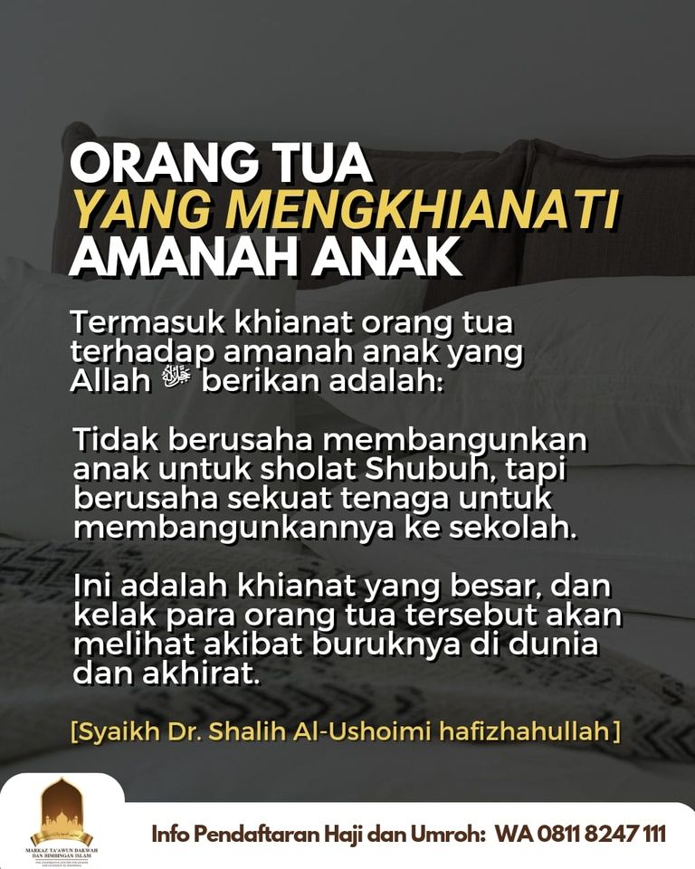 Tidak berusaha membangunkan anak untuk sholat Shubuh, tapi berusaha sekuat tenaga untuk membangunkannya ke sekolah.