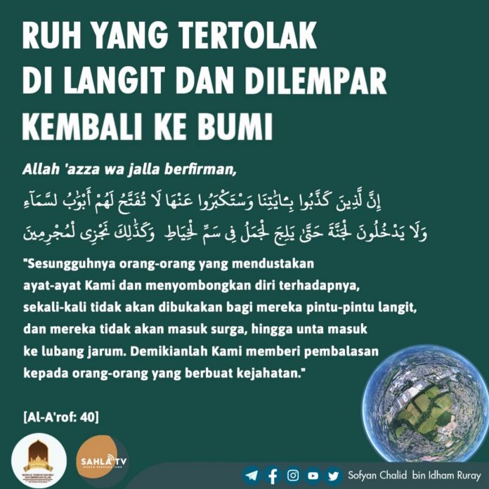 Maka ruhnya dilempar dari langit ke bumi dengan satu lemparan. Kemudian Rasulullah shallallaahu’alaihi wa sallam membaca firman Allah ta’ala: