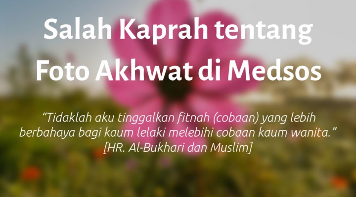 ??Salah Kaprah tentang Foto Akhwat di Medsos?? بسم الله الرحمن الرحيم ? Sebagian Ikhwan dan Akhwat yang sudah ngaji mengira bahwa seorang wanita apabila telah menutup auratnya, terlebih telah bercadar boleh kemudian difoto, baik difoto sendiri (selfie) atau orang lain, lalu diunggah ke internet dan media-media sosial seperti Facebook dan Twitter, atau dijadikan foto profil … Continue reading Salah Kaprah tentang Foto Akhwat di Medsos