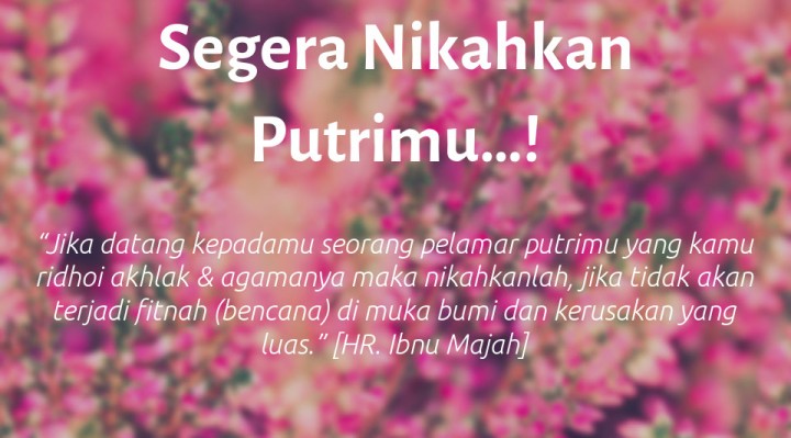 بِسْمِ اللَّهِ الرَّحْمَنِ الرَّحِيمِ ➡ Rasulullah shallallahu’alaihi wa sallam bersabda, إِذَا أَتَاكُمْ مَنْ تَرْضَوْنَ خُلُقَهُ وَدِينَهُ فَزَوِّجُوهُ ، إِلاَّ تَفْعَلُوا تَكُنْ فِتْنَةٌ فِي الأَرْضِ وَفَسَادٌ عَرِيضٌ “Jika datang kepada kalian seorang pelamar putri kalian yang kalian ridhoi akhlaknya dan agamanya maka nikahkanlah, jika kalian tidak melakukannya maka akan terjadi fitnah (bencana) di muka bumi dan kerusakan … Continue reading Segera Nikahkan Putrimu…!